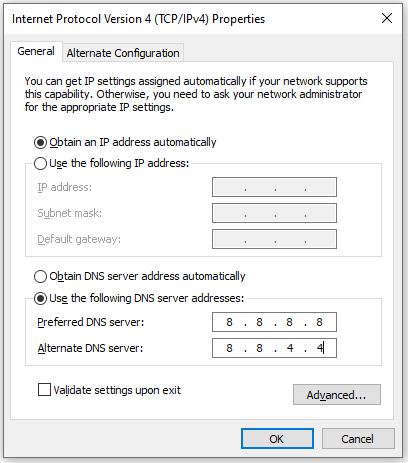 و در قسمت Alternate DNS server عدد 8.8.4.4 را وارد کنید